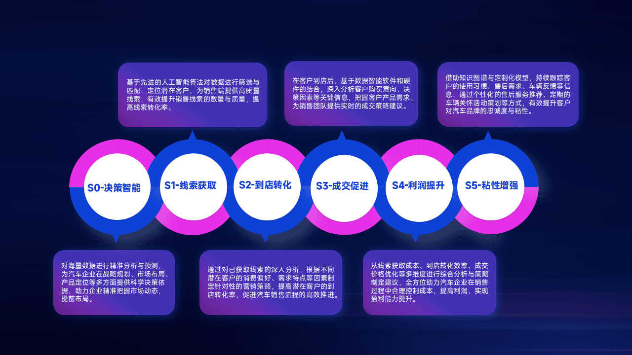 通过拓宽潜在客户来源、、优化线索分配并提高到店转化率,,以增强销售效率。。同时,,,,利用线索数据不断优化分析模型,,有效提升转化率,,扩大营销影响力。。。。